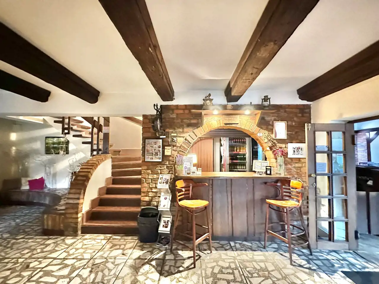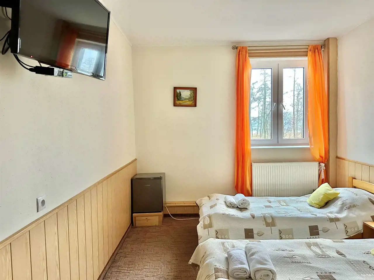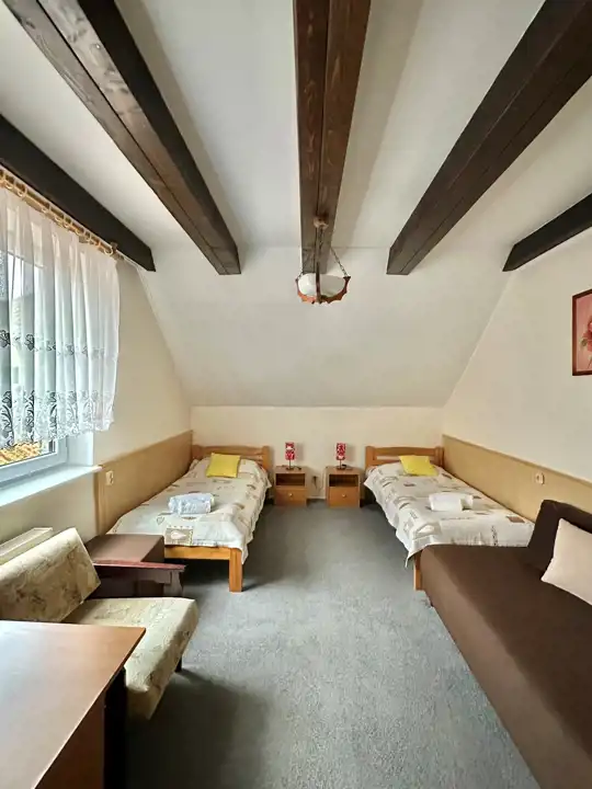 Część hotelowa składa się z 20 ogrzewanych pokoi oraz czterech sezonowych (lato) domków. Daje to możliwość zakwaterowania ok 70 osób.