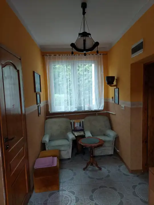 Na Sprzedaż przedwojenny Dom w lesie, w okolicach Barlinka. Pomorze Zachodnie. Trzy pokoje, kuchnia, łazienka, ganek. Piętro ( poddasze ) 2 pokoje. Duża piwnica. Piec na węgiel oraz drewno - centralne ogrzewanie. Powierzchnia Domu 103m2. Dodatkowo budynek gospodarczy murowany około 80m2 plus budynek drewniany. Działka 2370m2. W części działki stary, dobrze zachowany sad.