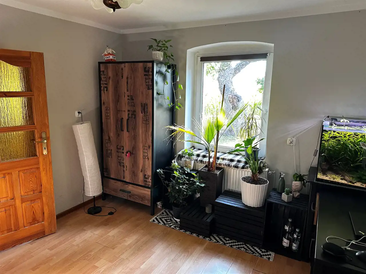 - Media Ogrzewanie: centralne; Woda: miejska i własna; Kanalizacja: szambo; Prąd: jest; Gaz: brak