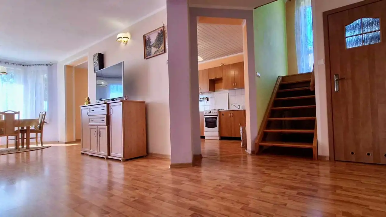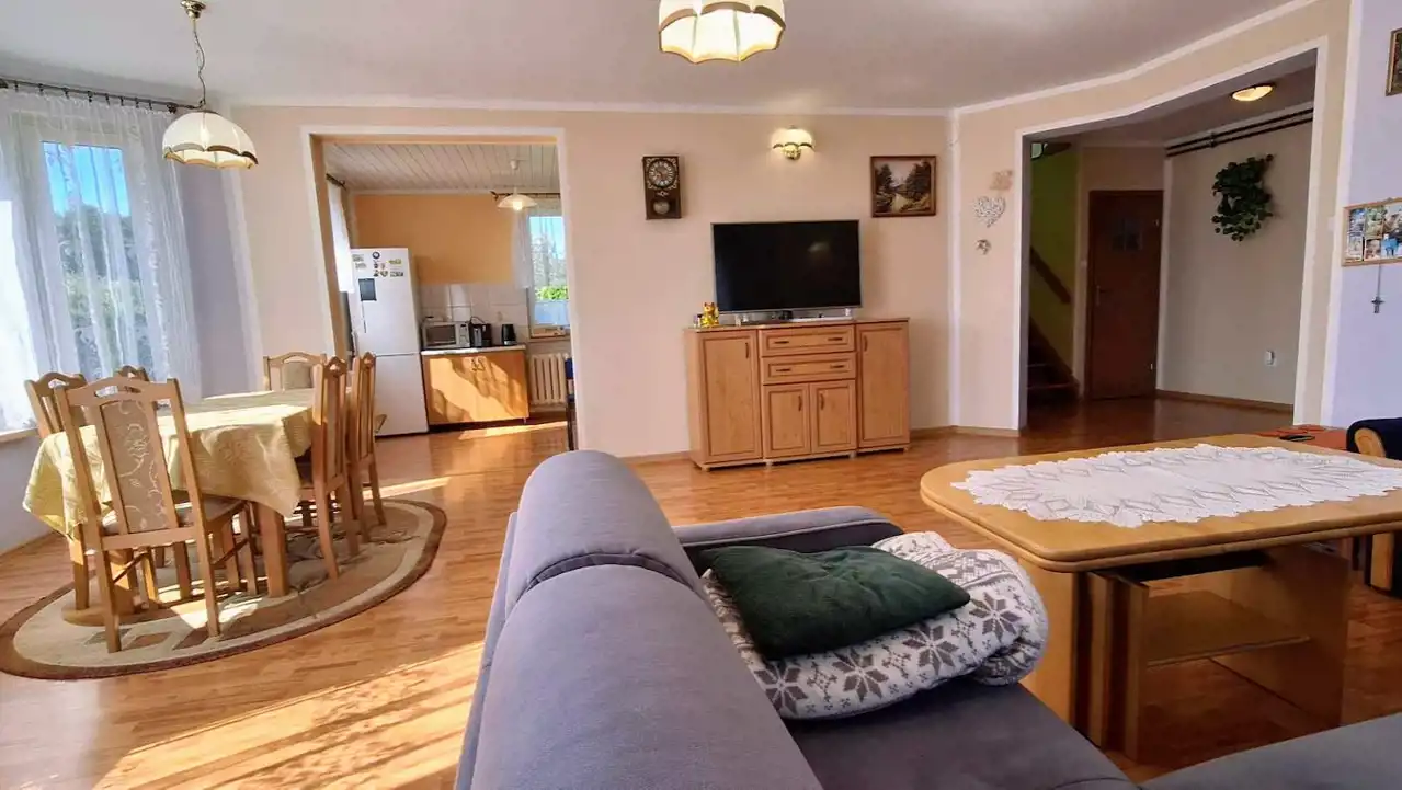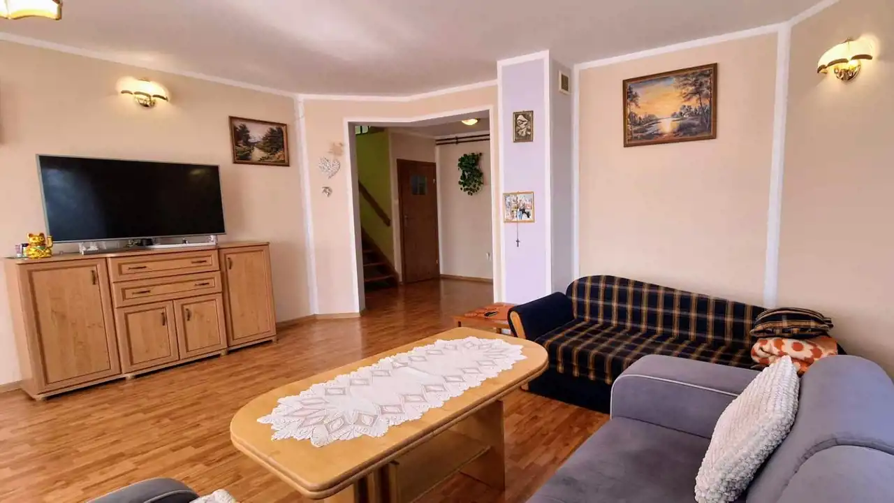 Pomiędzy Koszalinem a Kołobrzegiem. 5 minut od Morza. Powierzchnia Domu ok. 220m2. Parter to przestronny salon , kuchnia, garaż dwustanowiskowy. Piętro 3 pokoje , łazienka , dwie garderoby oraz 20 metrowy pokój rekreacyjny ( do wykończenia ). Dodatkowo wydzielone w parterze niezależne, z własnym wejściem, mieszkanie ( ok. 30m2 ) z kuchnią , łazienką oraz pokojem. Działka ok. 1000m2 z licznymi drzewkami owocowymi, garażem blaszanym oraz piwniczką - ziemianką. Dom ogrzewany piecem na pellet oraz gaz.