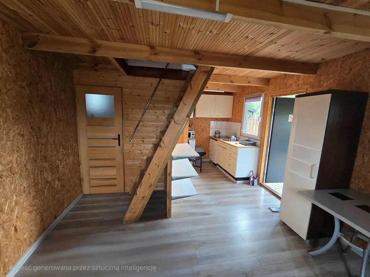 Parter: salon, umeblowana kuchnia, łazienka (natrysk + WC)
