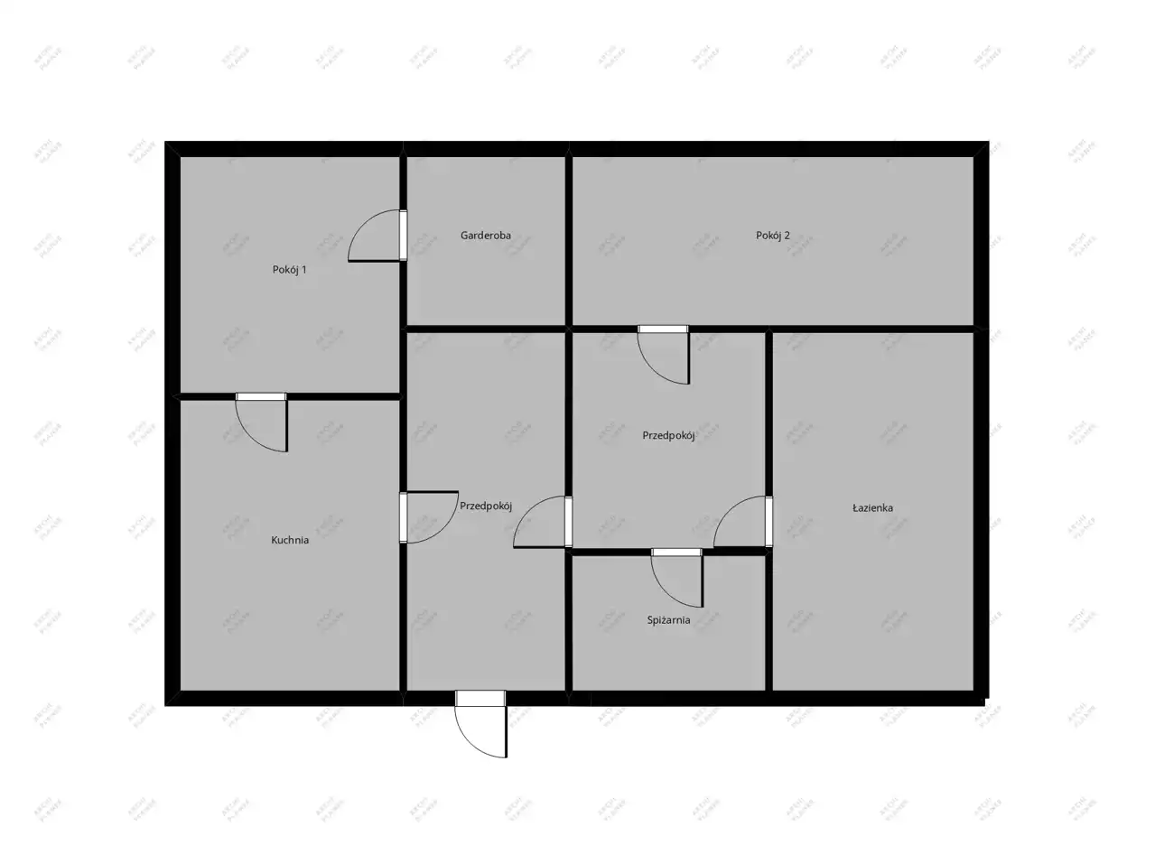 kuchnia, dwa pokoje, duży przedpokój, łazienka, spiżarnia oraz wydzielone miejsce pod garderobę.