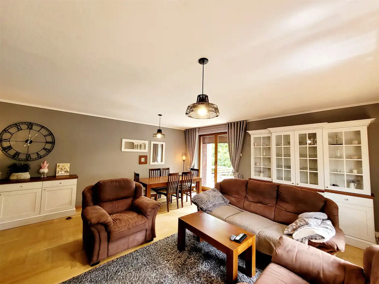 Na parterze mieści się duży, ustawny salon (31,4m2) z kominkiem i wyjściem na taras, pokój gościnny (10,82m2), klimatyczna kuchnia w zabudowie, łazienka z prysznicem i wc, wiatrołap, przestronny korytarz, pomieszczenie gospodarcze z nowym piecem gazowym oraz spiżarnia pod schodami i garaż o pow.33,99m2.