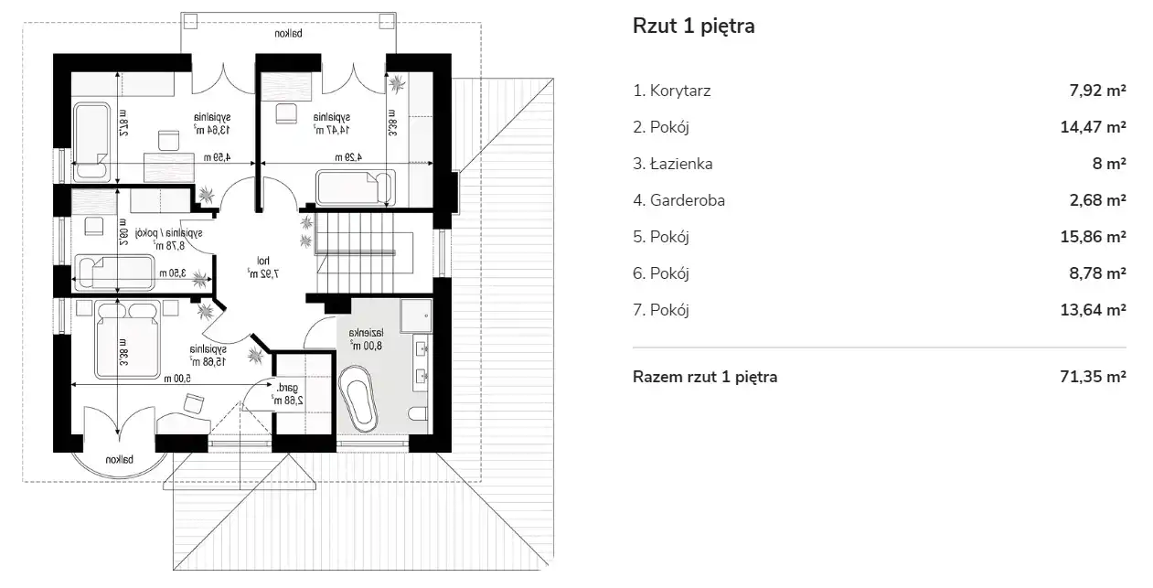 Budynek wybudowano z energooszczędnych materiałów - będzie niedrogi w późniejszej eksploatacji. Willa diamentowa to doskonała propozycja dla osób potrzebujących domu piętrowego, ale marzących o pięknej klasycznej architekturze, nie chcących powielać oklepanych wzorów „nowoczesnej piętrówki”.