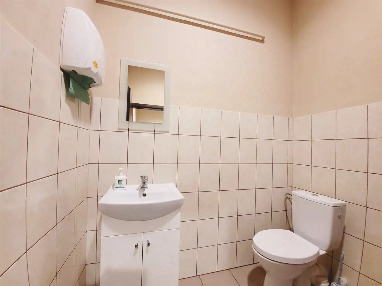 Przed budynkiem utwardzone miejsca postojowe, gdyż dół nieruchomości stanowi część handlowo-usługowa o powierzchni 152,18m2. Miejsce na biznes gotowe! Parter to duża sala sprzedażowa z zapleczem socjalnym i toaletą, duży magazyn z bramą garażową, garaż z miejscem do majsterkowania, kotłownia w której urządzono także pralnio-suszarnię oraz przestronna klatka schodowa.