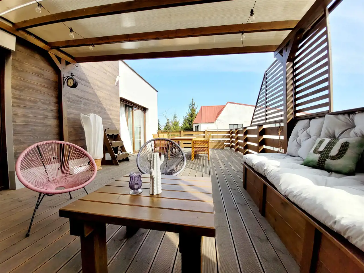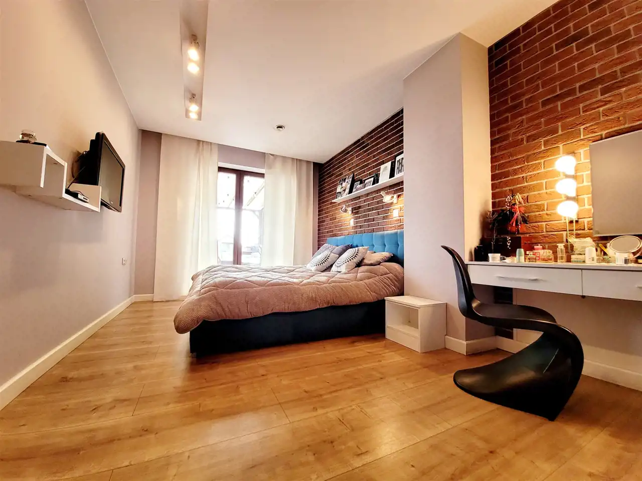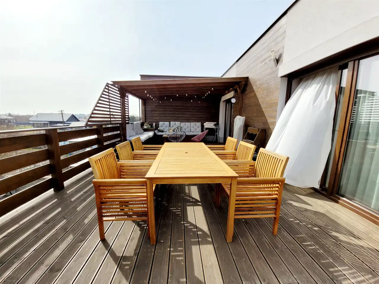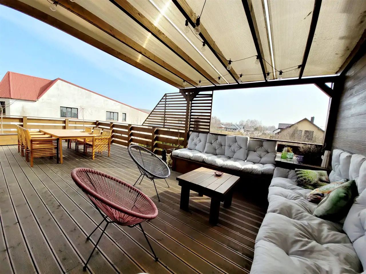 Piętro o powierzchni 170,01m2 zarezerwowane jest dla domowników, to świetnie zaprojektowana strefa dzienna, w której tętni życie rodzinne i towarzyskie. Jest tu widny i przestronny salon z biokominkiem i olbrzymią kanapą- idealne miejsce na jesienne i zimowe wieczory. Przez duże okna w salonie będziesz widzieć swój ogród, a wprost z salonu możesz wyjść na duży taras (ok.30m2). Tu przez cały sezon można biesiadować z liczną grupą znajomych. W drugiej części, po przeciwnej stronie salonu jest jadalnia i kuchnia z pojemną zabudową meblową ( więc nie potrzebujesz dodatkowej spiżarni- będzie więc gdzie schować zapasy). Na tej kondygnacji urządzono główną sypialnię z garderobą i wyjściem na taras; pokój gościnny oraz pokój dla dzieci. Jest też salon kąpielowy z wanną, prysznicem, bidetem, wc i umywalką. Sprytne zastosowanie świetlików dachowych pozwala na oszczędność energii elektrycznej i dodaje uroku. Idealne miejsce na domowe spa.
