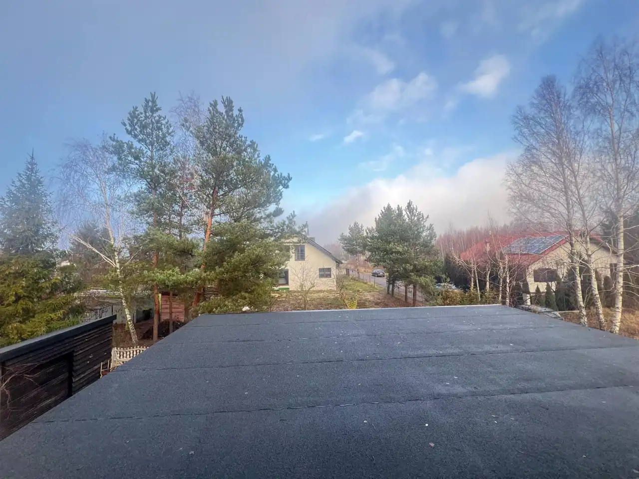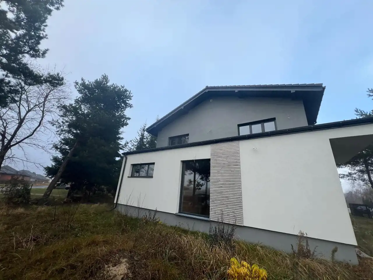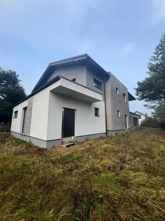 Dom budowany z najlepszej jakości materiałów. Jest ocieplony, elewacja jest wykonana z tynku mineralnego i drewna zabezpieczonego impregnatem, dach z pełnym deskowaniem, pokryty dachówką, tarasy z solidną izolacją termiczną i przeciwwilgociową. Okna trójszybowe oraz elektryczne rolety do sterowania zdalnego, solidne drzwi antywłamaniowe, duża automatyczna brama Nice sterowana zdalnie.