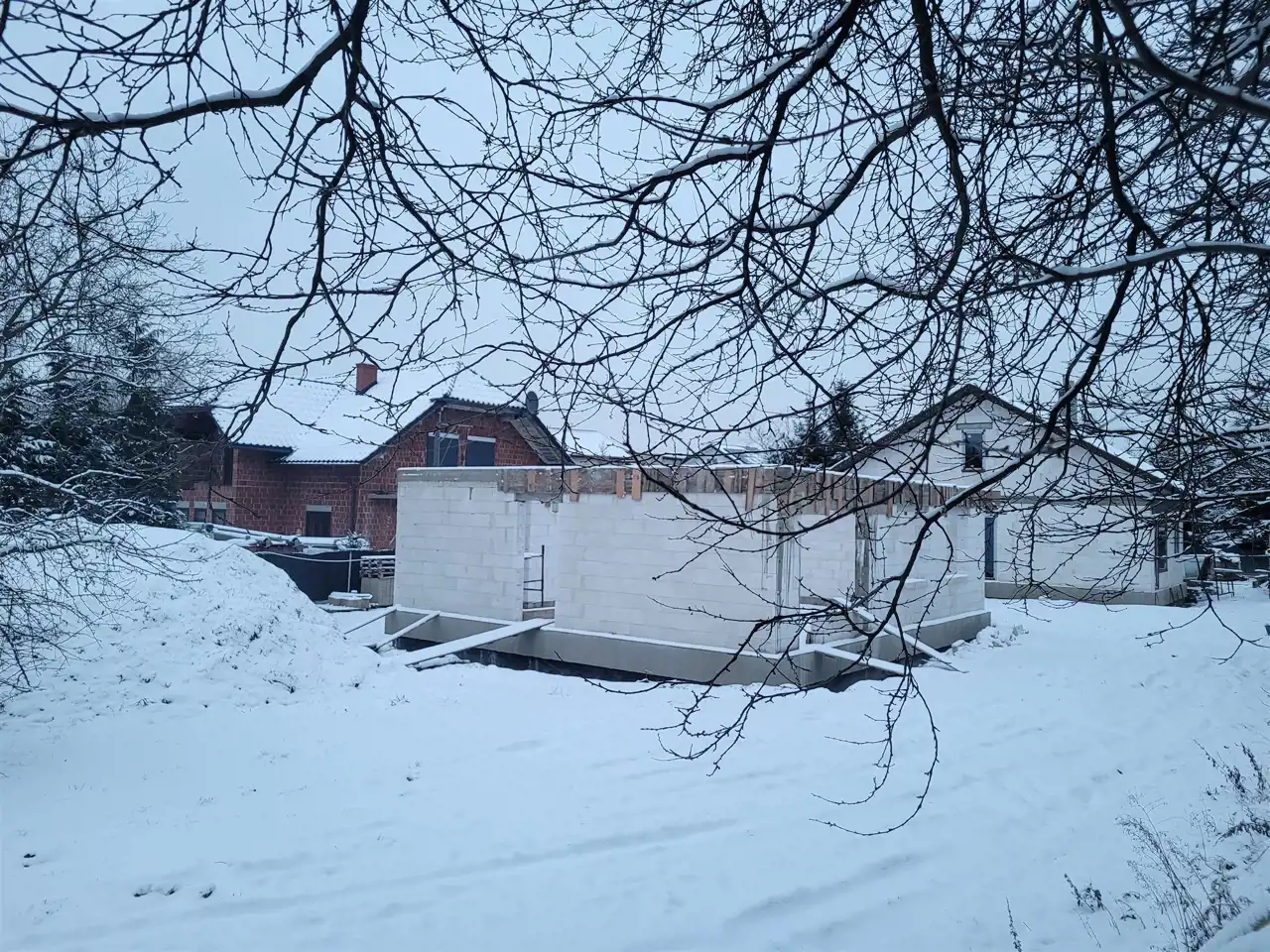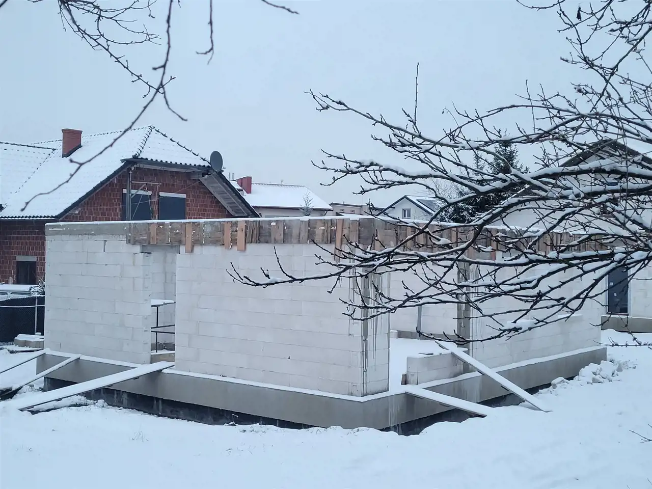 Energooszczędny dom w stanie surowym, murowany z bloczków H+H. Obecny stan budynku to poziom"0" z posadzką i instalacją hydrauliczną ( bez dachu).