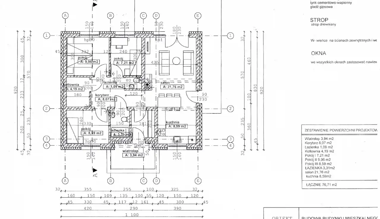 Budynek parterowy, niepodpiwniczony o projektowanej pow. użytkowej 76,71m2.