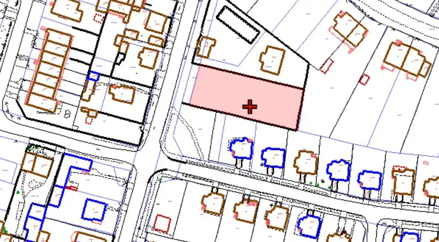 Dojazd drogą asfaltową. Działka ogrodzona z trzech stron i niezagospodarowana o powierzchni ok.. 400m2( 23mx20m), wśród innych zabudowań mieszkalnych.