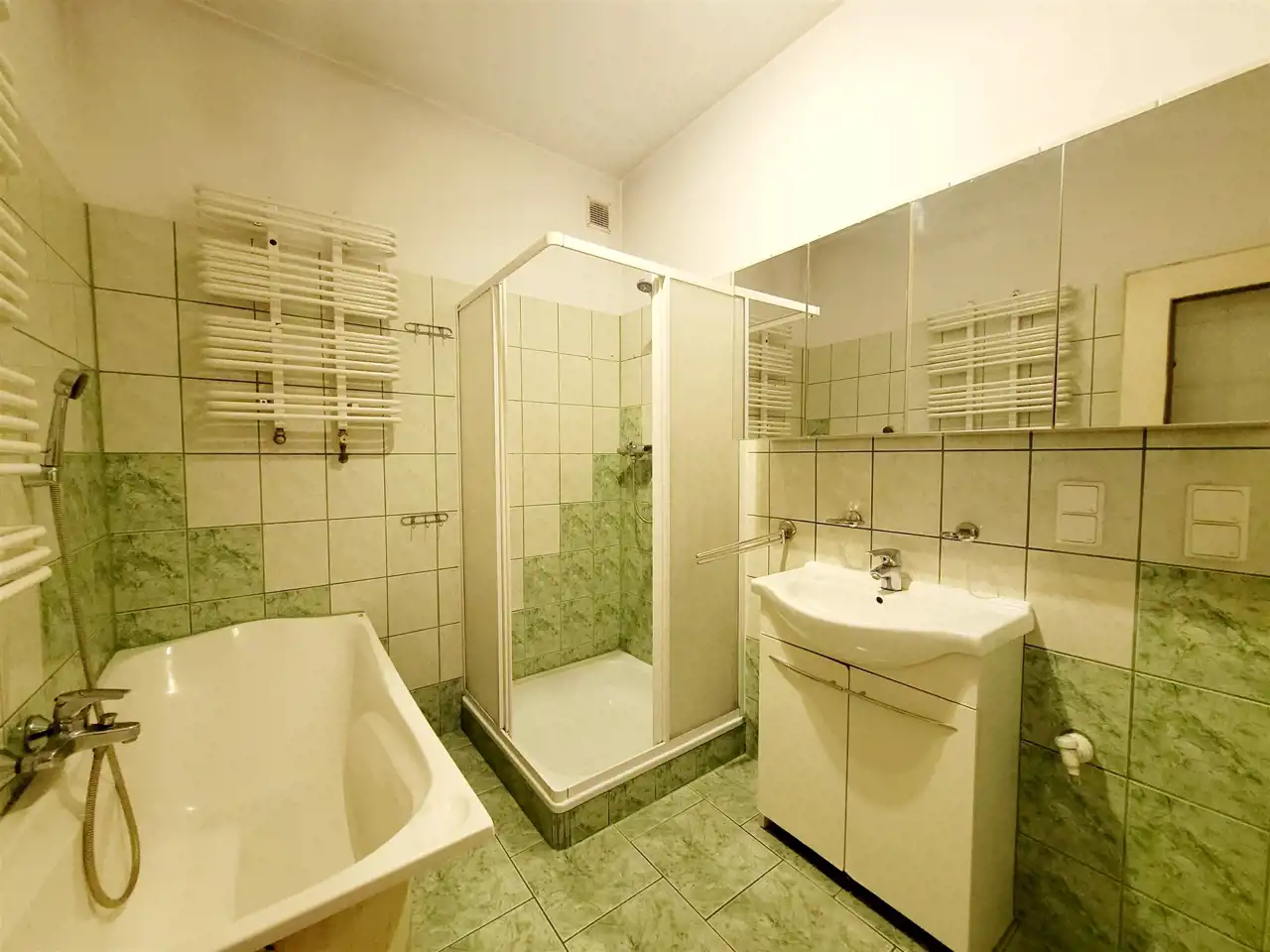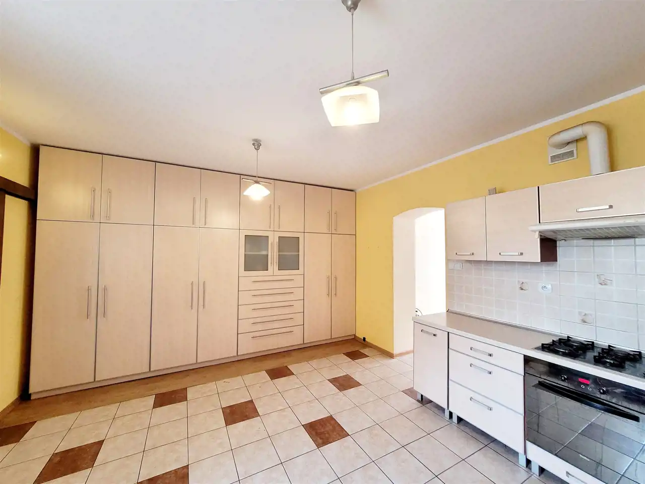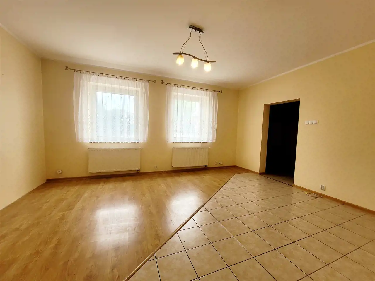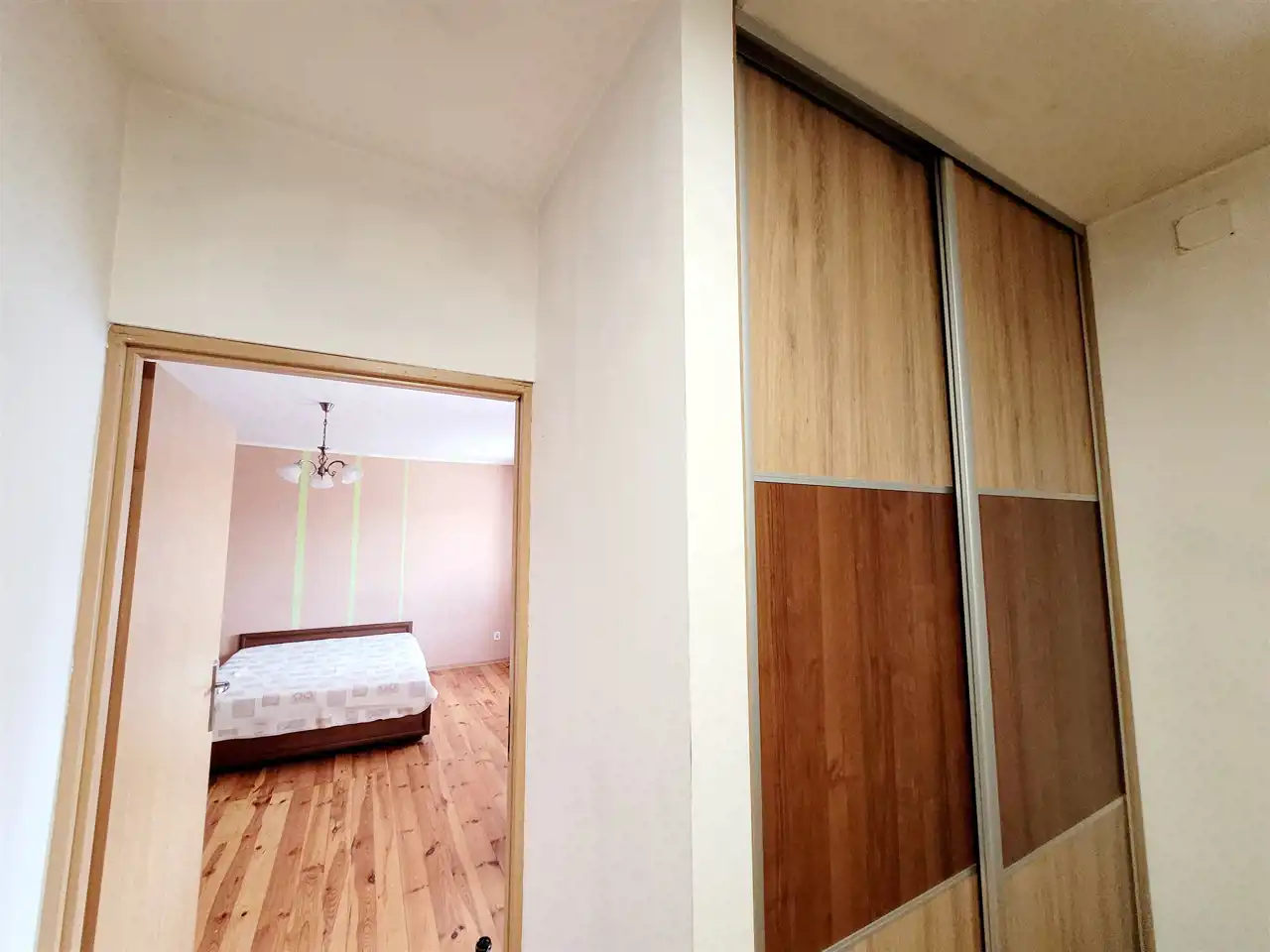 Na podłogach panele i płytki, ściany malowane.