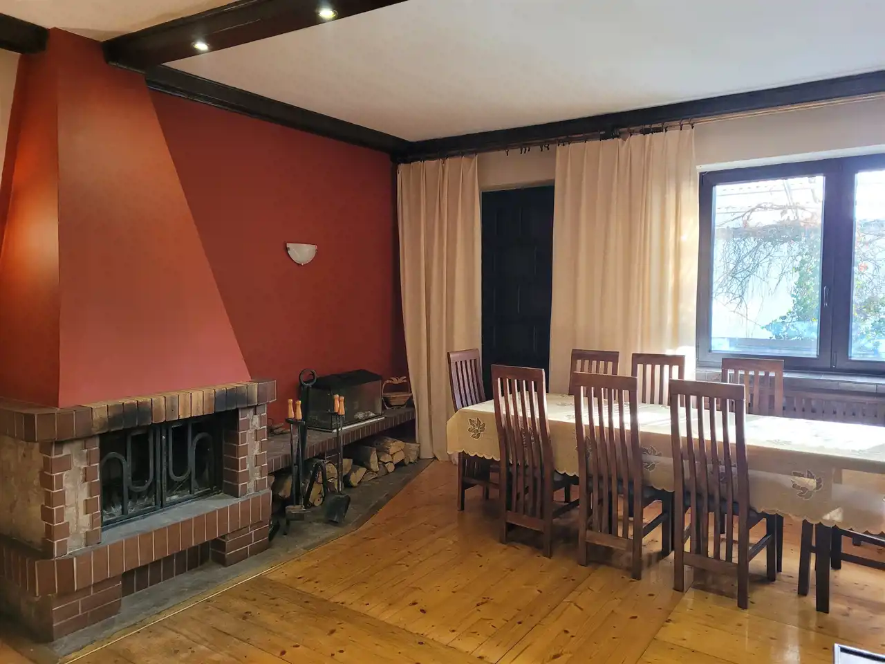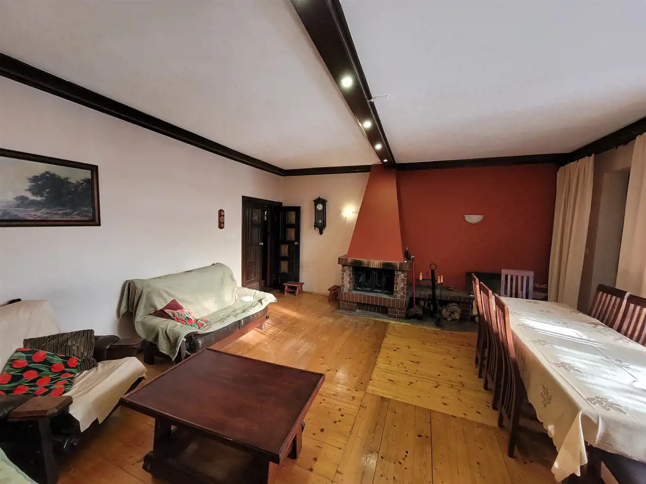 PARTER- wiatrołap, przestronny korytarz z dużą szafą, kuchnia z jadalnią, duży- reprezentacyjny salon z kominkiem i wyjściem na taras, wc