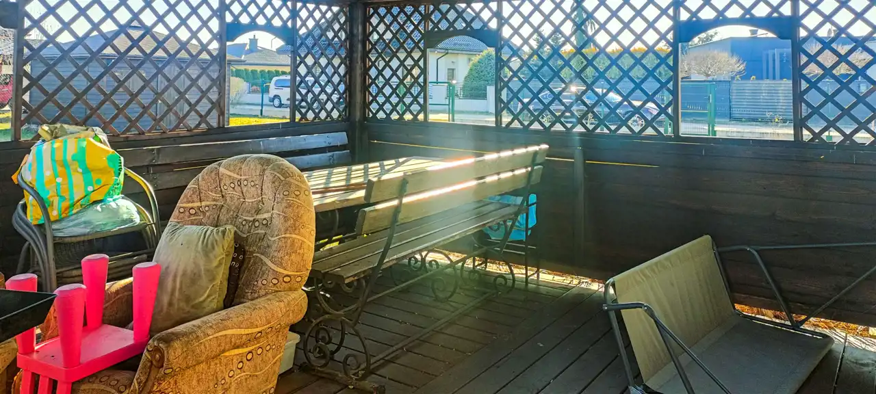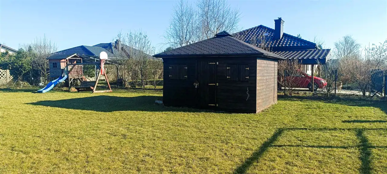 - Zabudowania: altanka oraz drewniany domek – z możliwością wykupienia za dodatkową opłatą