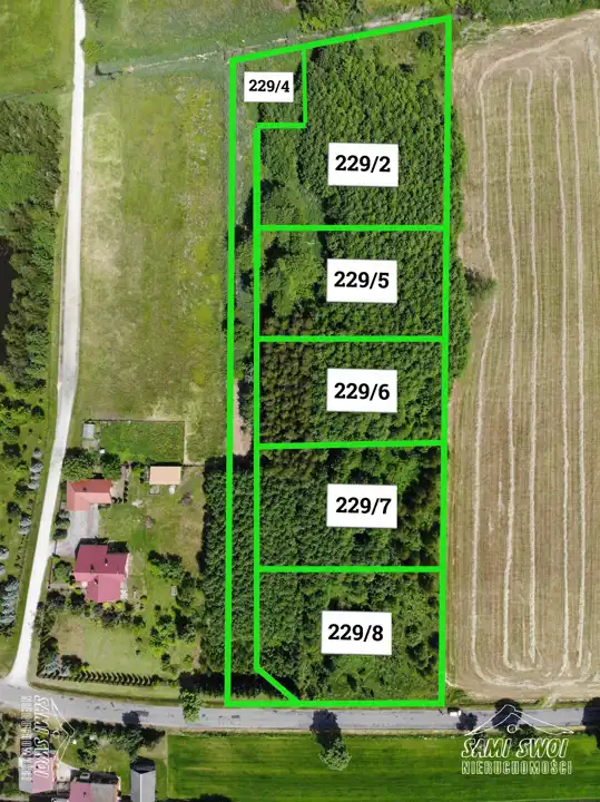 - Media Woda: brak; Kanalizacja: brak; Prąd: brak; Gaz: brak