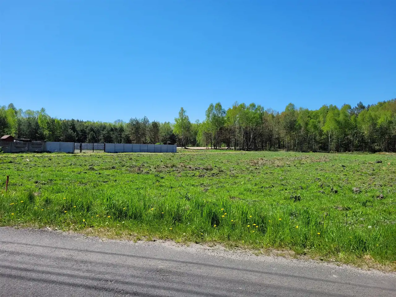 Teren płaski, nie porośnięty drzewami, wykarczowane, dojazd drogą asfaltową z drogą wewnętrzną.