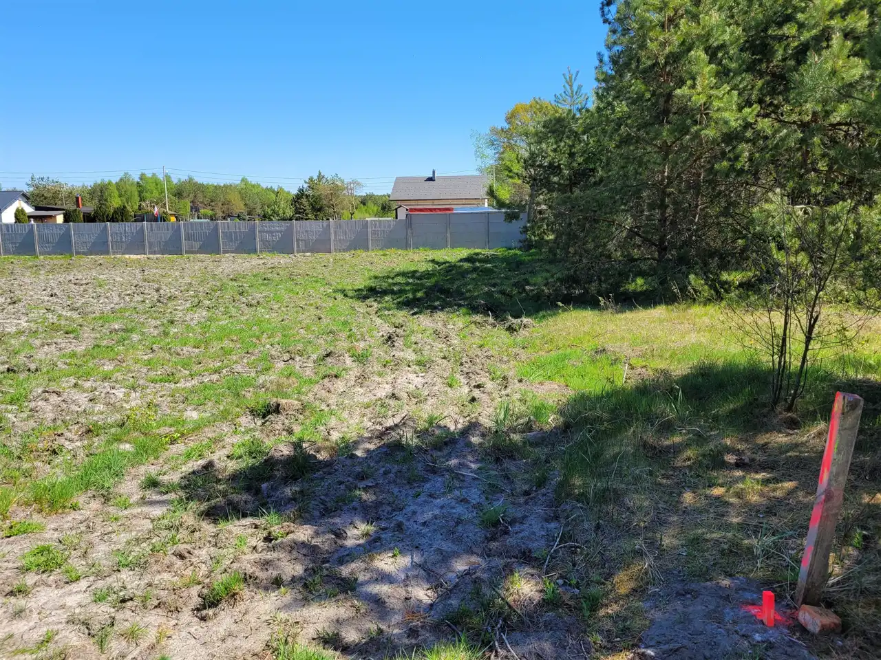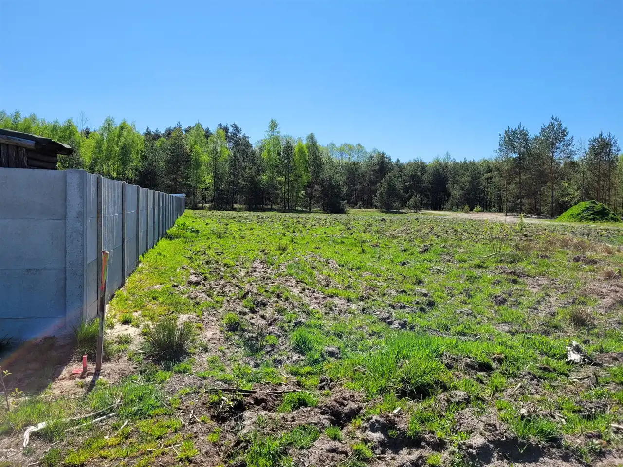 2) Powierzchnia 2165m2 z bezpośrednim sąsiedztwem lasu, częściowo ogrodzona płotem betonowym
