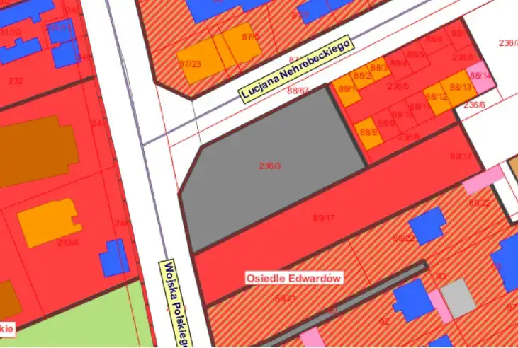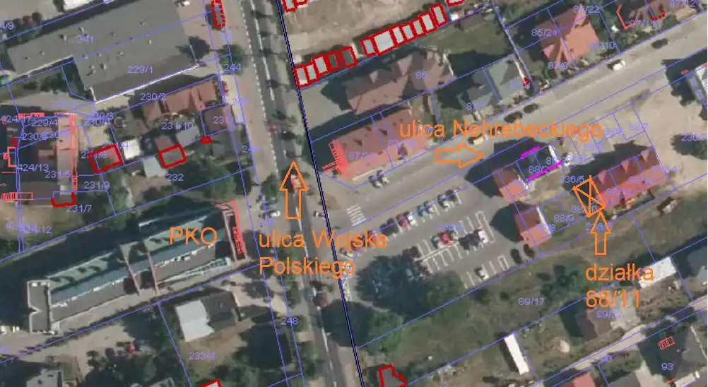 Teren objęty Miejscowym Planem Zagospodarowania Przestrzennego z przeznaczeniem na usługi. Działka ma wymiary ok.6mx9,5m i zgodnie w planem miejscowym można zabudować ją w 100% (dwie kondygnacje). Na sąsiedniej działce znajduje się budynek usługowy, w którym aktualnie działa przedszkole. W okolicy mieści się wiele punktów usługowych (fryzjerstwo, biuro rachunkowe, bank, studio urody, siłownia,studio tatuażu, gabinety stomatologiczne itp) oraz budynki mieszkalne.