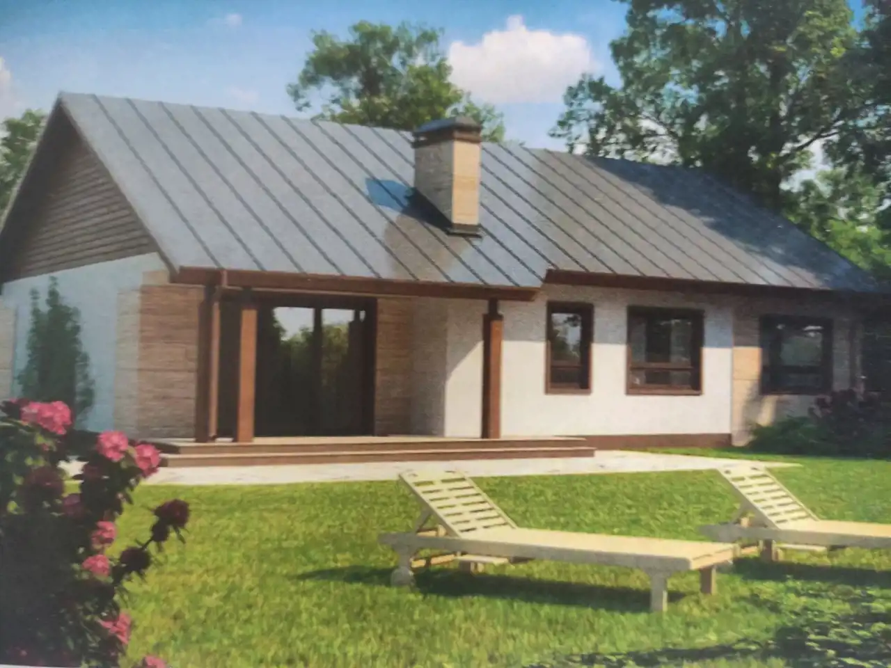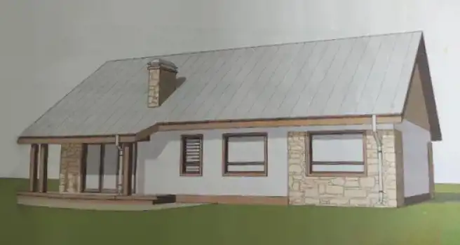Dom murowany, kryty papą z możliwością aranżacji poddasza.