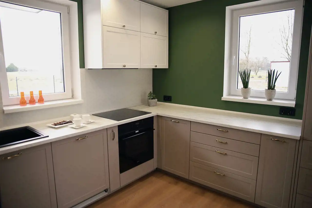 Czas na głównego bohatera oferty: DOM o powierzchni 131 m2 – został wybudowany w zgodzie z zasadami energooszczędności, zatem zyskujesz gwarancję minimalizacji kosztów zużycia energii. Funkcjonalny rozkład pomieszczeń sprawia, że to idealne miejsce dla rodziny. Na parterze znajdziesz przestronną strefę dzienną (salon z wyjściem na taras) płynnie połączoną z kuchnią oraz jadalnią i praktyczną spiżarnią. U progu wejścia do domu łazienka oraz dostępna z wiatrołapu kotłownia z funkcją pralni i garaż. We wnętrzu domu zaplanowano również pokój, który może idealnie pełnić rolę biura lub pokoju gościnnego. A co na poddaszu? Na poddaszu zaprojektowano cztery jasne sypialnie, garderobę oraz łazienkę. W ofercie znajdziemy pełne wyposażenie kuchni, dopracowane w każdym calu wykończenia łazienek oraz pokoi. Wystarczy odebrać klucze!