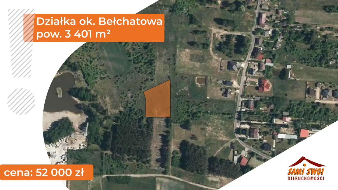 Działka o powierzchni 3401 m2 w okolicach Bełchatowa.