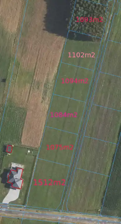 Działki o powierzchni 1075m2. Wymiary 32x34m.
