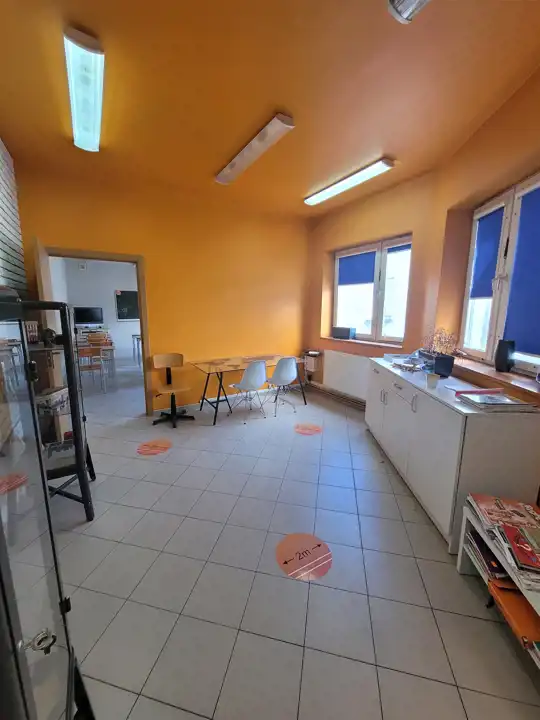 Lokal o powierzchni ok.60m2 usytuowany na piętrze kamienicy, przy głównej ulicy. Lokal składa się z pomieszczenia idealnego na sekretariat, kącika socjalnego oraz sali konferencyjnej. Wejście z bramy, wspólna klatka schodowa oraz toaleta z łazienką na piętrze.
