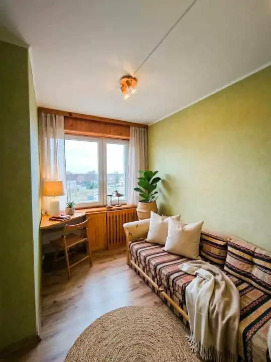 Mieszkanie ciepłe i ciche, usytuowane na czwartym piętrze w niskim bloku za Skarbkiem.