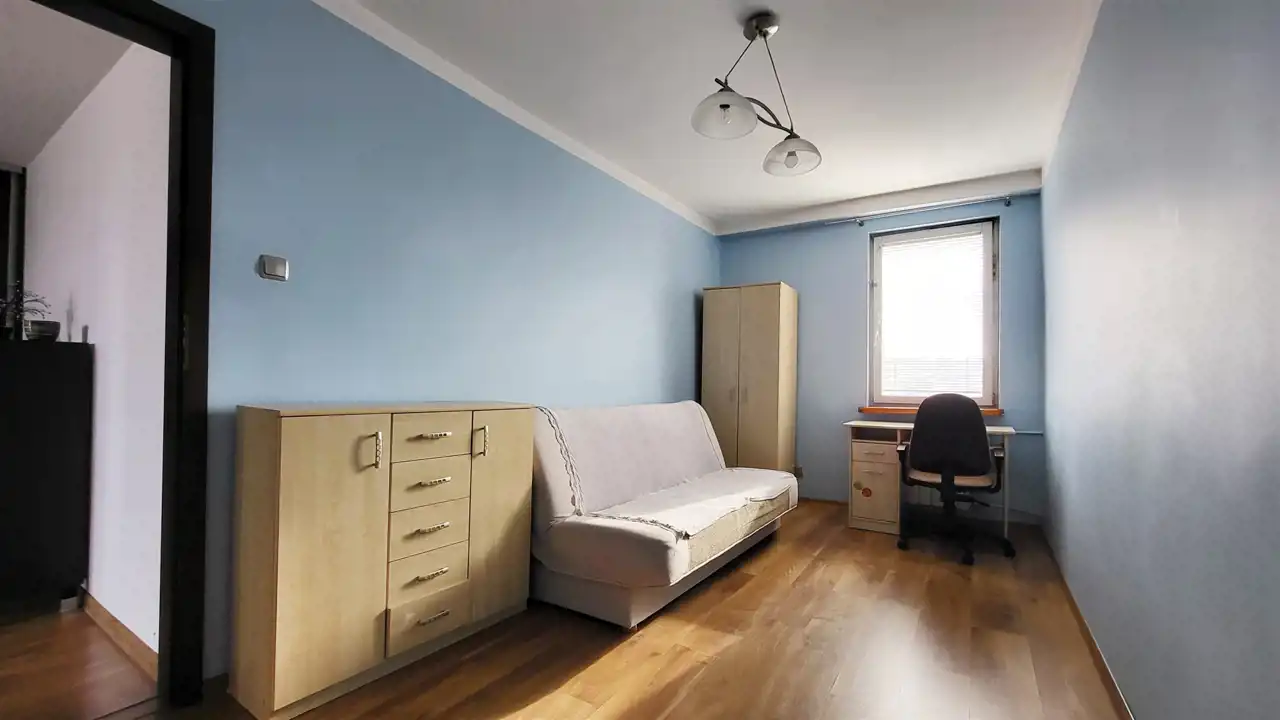 - Układ: 3 jasne pokoje + oddzielna kuchnia z oknem