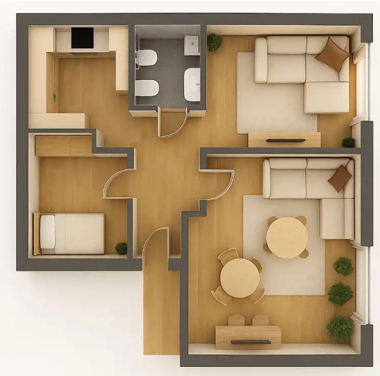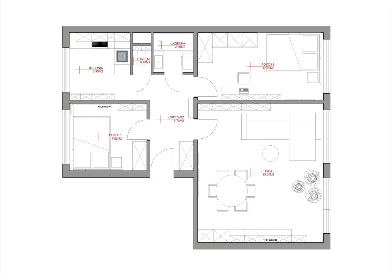 - Charakterystyka mieszkania 60 m2, 3 pokoje