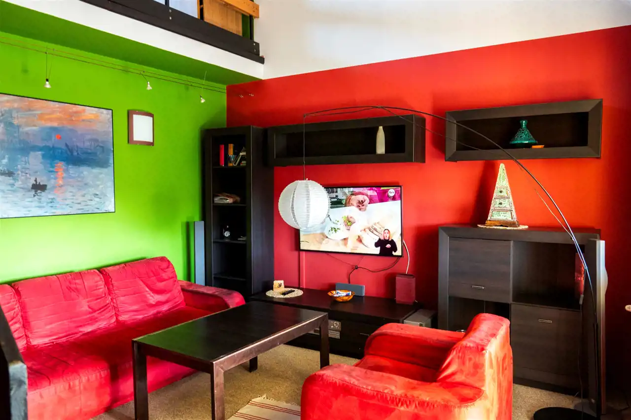 - Kuchnia oraz salon z antresolą i dużym balkonem – idealna przestrzeń do relaksu