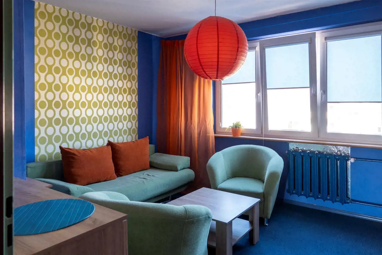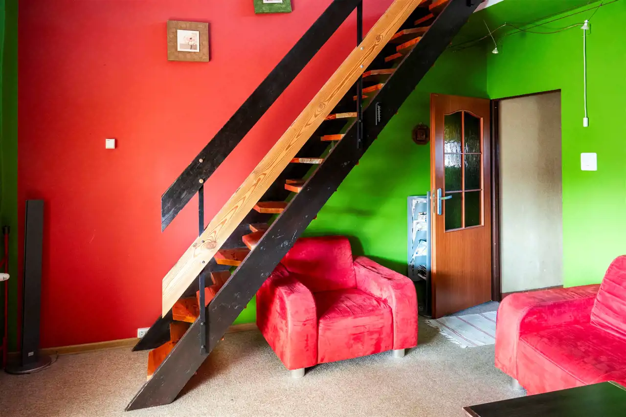 - Dwa przestronne pokoje oraz WC z łazienką po prawej stronie