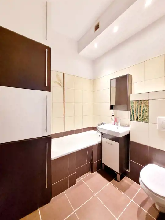 Mieszkanie umeblowane i wyposażone we wszystkie niezbędne sprzęty (pralka, lodówka, zmywarka).