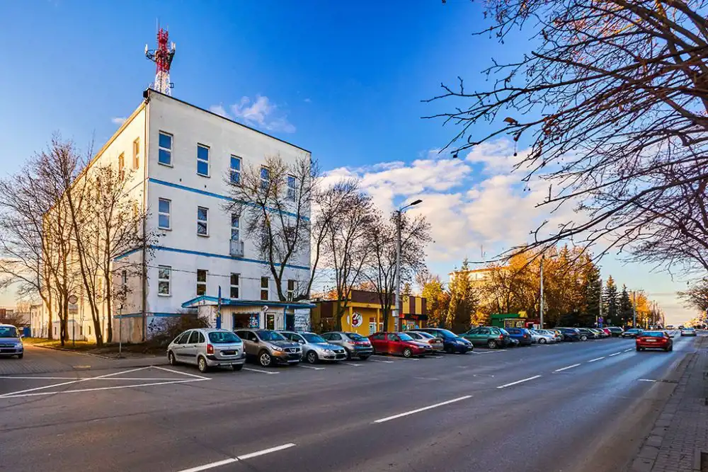 Na dziedzińcu, do którego prowadzi brama bezpośrednio z ul. Kościuszki znajduje się parking z 7 miejscami postojowymi.