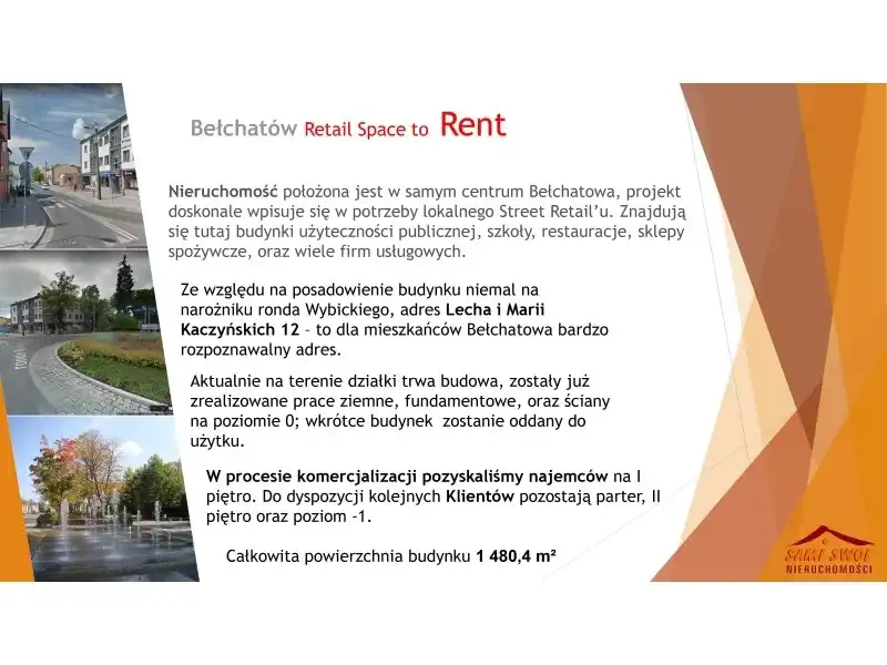Nieruchomość położona jest w samym centrum Bełchatowa, projekt doskonale wpisuje się w potrzeby lokalnego Street Retail’u. Znajdują się tutaj budynki użyteczności publicznej, szkoły, restauracje, sklepy spożywcze, oraz wiele firm usługowych.