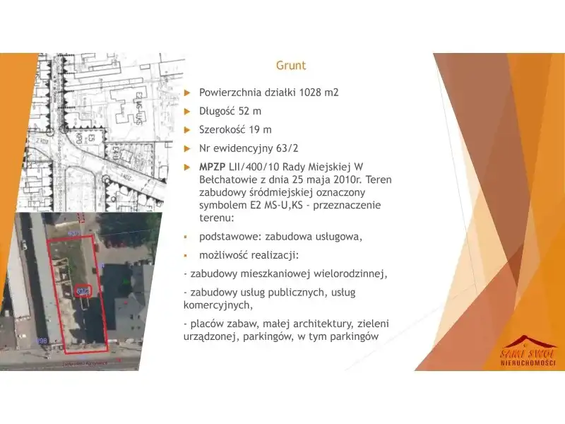Grunt, na którym znajduje się rozpoczęta budowa to powierzchnia 1028 m2 (długość 52 m x szerokość 19 m).