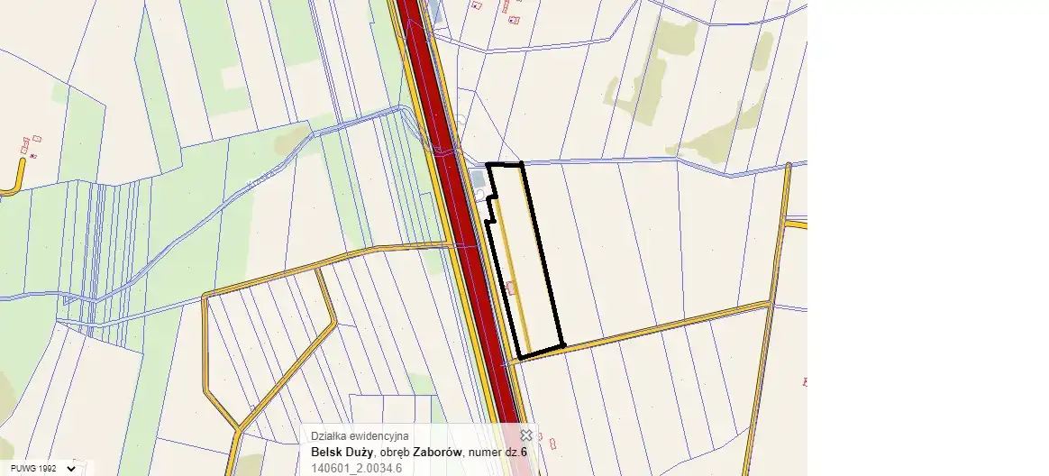 Działka inwestycyjna, na płd. od Grójca, przy S7, dobry dojazd. Przygotowana inwestycja (wszystkie zgody) na budowę stacji demontażu pojazdów. Gmina Belsk Duży. Wymiary ok. 75 X 330 m.