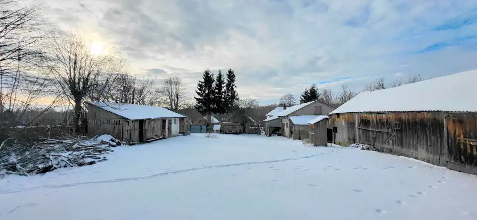 Na działce o powierzchni 8300m2 oprócz domu są jeszcze dwa murowane budynki gospodarcze, stodoła murowano-drewniana oraz 3 budynki drewniane.