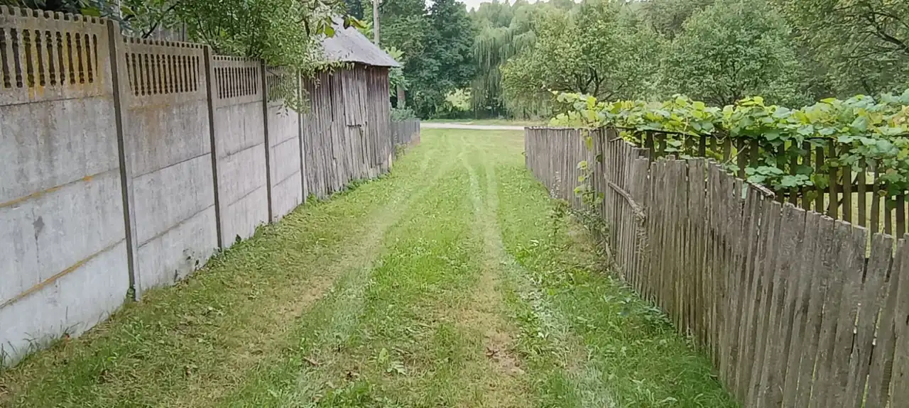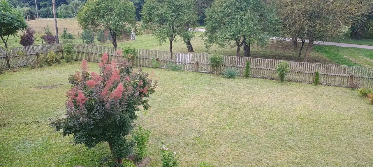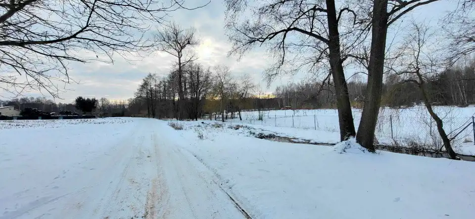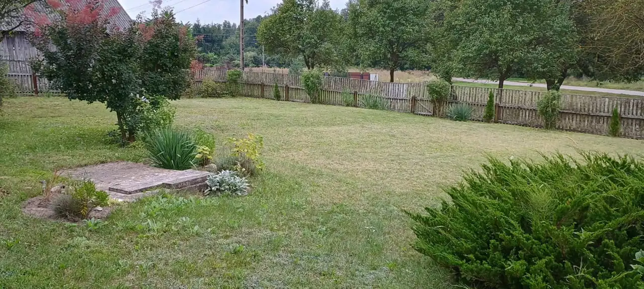 Działka o szerokości aż 30m jest częściowo ogrodzona i od ulicy przy której płytnie niewielki strumyk sięga aż do ściany lasu. Teren jest lekko nachylony na południe co sprawia, że okolica jest bardzo urokliwa.