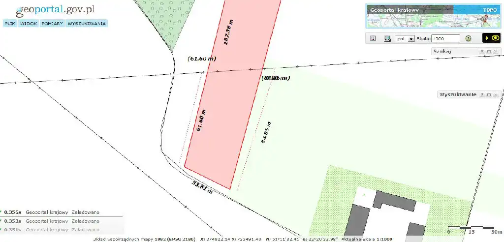 Działka siedliskowa (w miejscowym planie zagospodarowania działka pod zabudowę zagrodową - możliwość wybudowania domu jednorodzinnego) o pow. 11300 mkw i wymiarach: szer. 35 m i długość ok. 350 m. Działka kształtem zbliżona jest do prostokąta, płaska oraz przylega do lasu. Pas zabudowy wynosi 70 m od drogi gminnej. W pobliżu znajdują się pola i rzadka zabudowa siedliskowa. Idealne miejsce pod budowę domu jednorodzinnego. Dobry dojazd, 2 km asfaltem od drogi powiatowej Strzeszkowice - Bełżyce, ostatnie 100 m drogą gruntową. W Babinie znajduje się po remoncie dwór wraz z zabudowaniami dworskimi i parkiem dworskim oraz sklepy i szkoła podstawowa.
