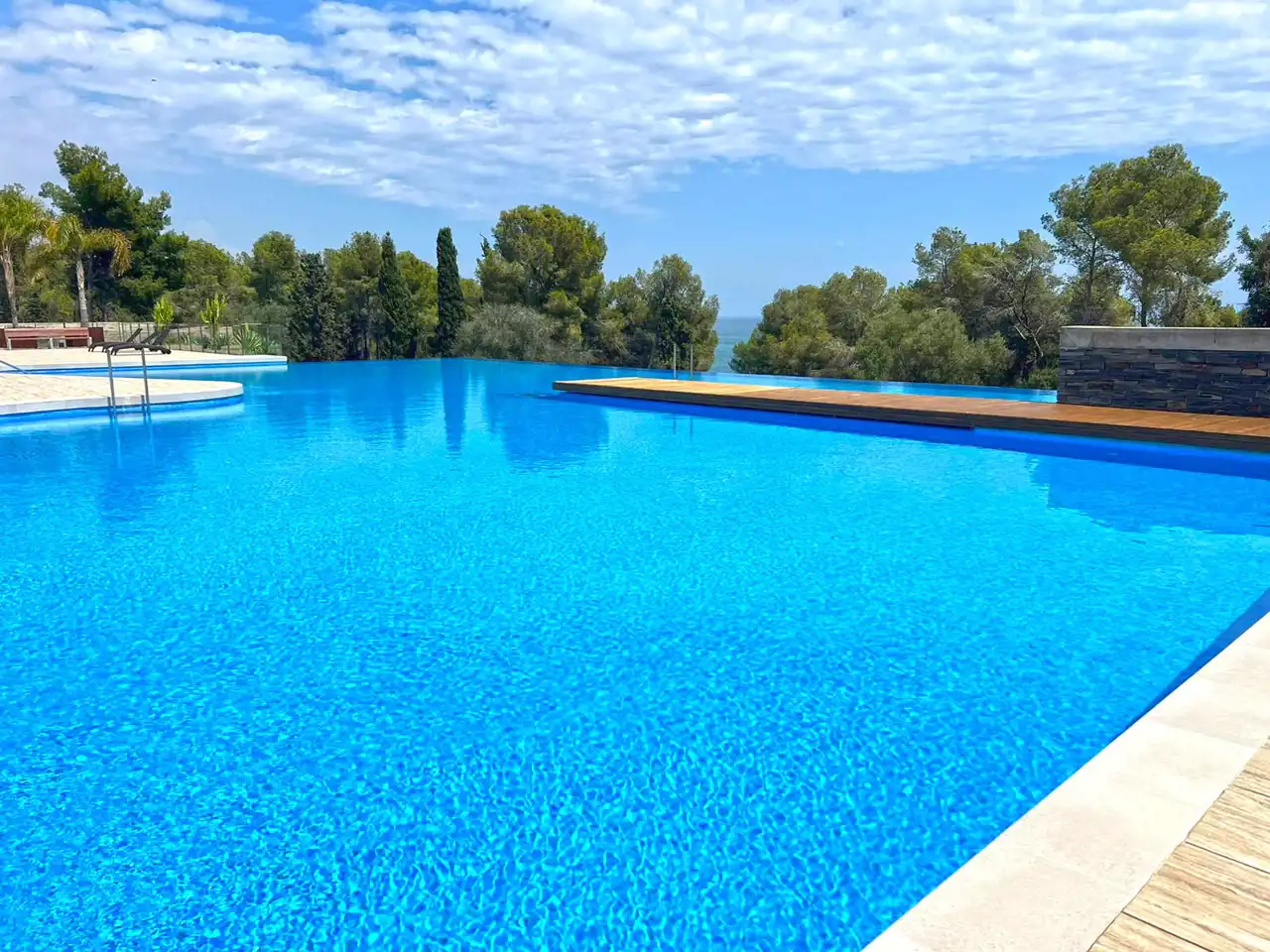 MB NIERUCHOMOŚCI oferuję w Hiszpanii ( KATALONIA), ekskluzywny II poziomowy apartament 96 m2 z garażem na ogrodzonym i monitorowanym osiedlu z prywatną całodobową ochrona w miejscowości Sitges 40 km od Barcelony. W skład apartamentu wchodzi: salon z kominkiem i wyjściem na taras 18 m2 z widokiem na panoramę gór, oddzielną w pełni wyposażoną i umeblowaną kuchnię z wyjściem na taras, dwa pokoje dwuosobowe z łazienkami, pokój jednoosobowy, pralnia, garaż . Na piętrze: taras 25 m2 z widokiem na morze. Cała posesja ogrodzona i strzeżona . Do wspólnego użytku, basen i teren rekreacyjny. Nieruchomość położona na ekskluzywnym osiedlu w pobliżu plaży 350 m i pięknego Starego Miasta. Idealny dojazd do Barcelony kolejką , autostradą lub malowniczą drogą nad morzem.