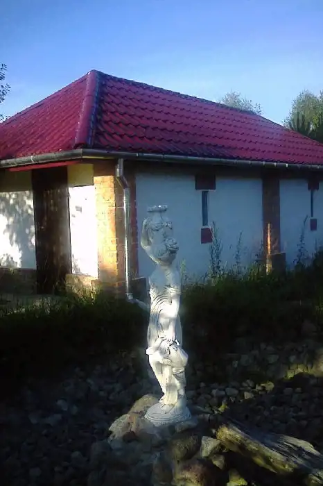 Budynek mieszkalny (główny) o pow. 160 m/kw, budynek piwnicy, dwa budynki magazynowe, wiata, altana, dwa garaże, budynek kapliczki, sauna, stajnia, suszarnia, dwie komórki na opał.