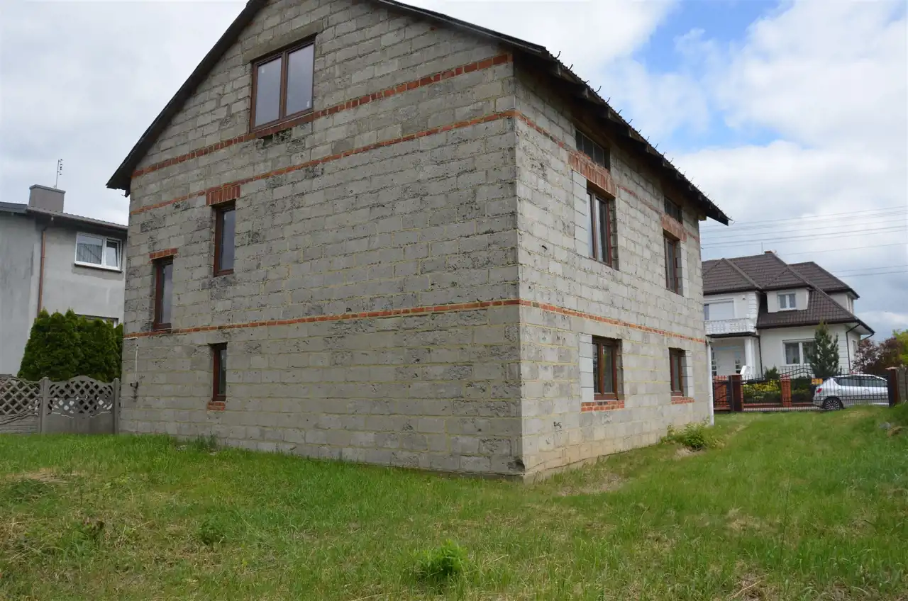 Oferuję do sprzedania nieruchomość zabudowaną położoną na osiedlu domów jednorodzinnych. Dom mieszkalny dwukondygnacyjny o powierzchni użytkowej 165 m2.Działka o powierzchni 586 m2 ogrodzona płotem betonowym. Brama wjazdowa przesuwna, ogrodzenie od frontu działki metalowe, furtka. Szerokość działki 19 m, dojazd drogą asfaltową. Media-woda, kanalizacja, prąd na działce, piec na eko-groszek. Dom dwukondygnacyjny w stanie surowym, bez podpiwniczenia. Ściany murowane z cegły, strop żelbetowy, dach drewniany krokwiowy, pokrycie dachu -blachodachówka. Rozkład pomieszczeń-parter (wiatrołap, kuchnia, salon, łazienka z wc, kotłownia), I piętro-3 sypialnie, łazienka z wc .Nieruchomość położona w sąsiedztwie działek zabudowanych. Nieruchomość rozwojowa z możliwością rozbudowy domu lub z przeznaczeniem na działalność gospodarczą. Zapraszam do prezentacji!