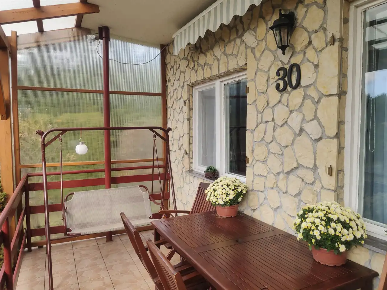 Z zewnątrz został ozdobnie wykończony kamieniem typu piaskowiec, co nadaje mu niepowtarzalnego, sielskiego charakteru.