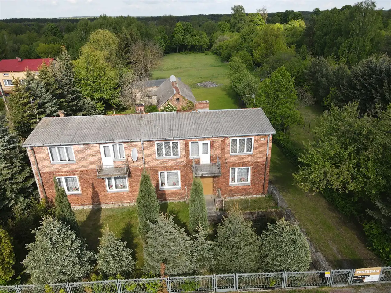 Oferujemy na sprzedaż dom z lat 60 o powierzchni zabudowy 193m2, położony na pięknej, szerokiej działce o powierzchni 0,6268 ha ( szerokość ok. 37m) wraz z budynkami gospodarczymi. Nieruchomość posiada dwa niezależne wejścia, co czyni ją idealną dla dwóch rodzin lub jako inwestycję pod wynajem.