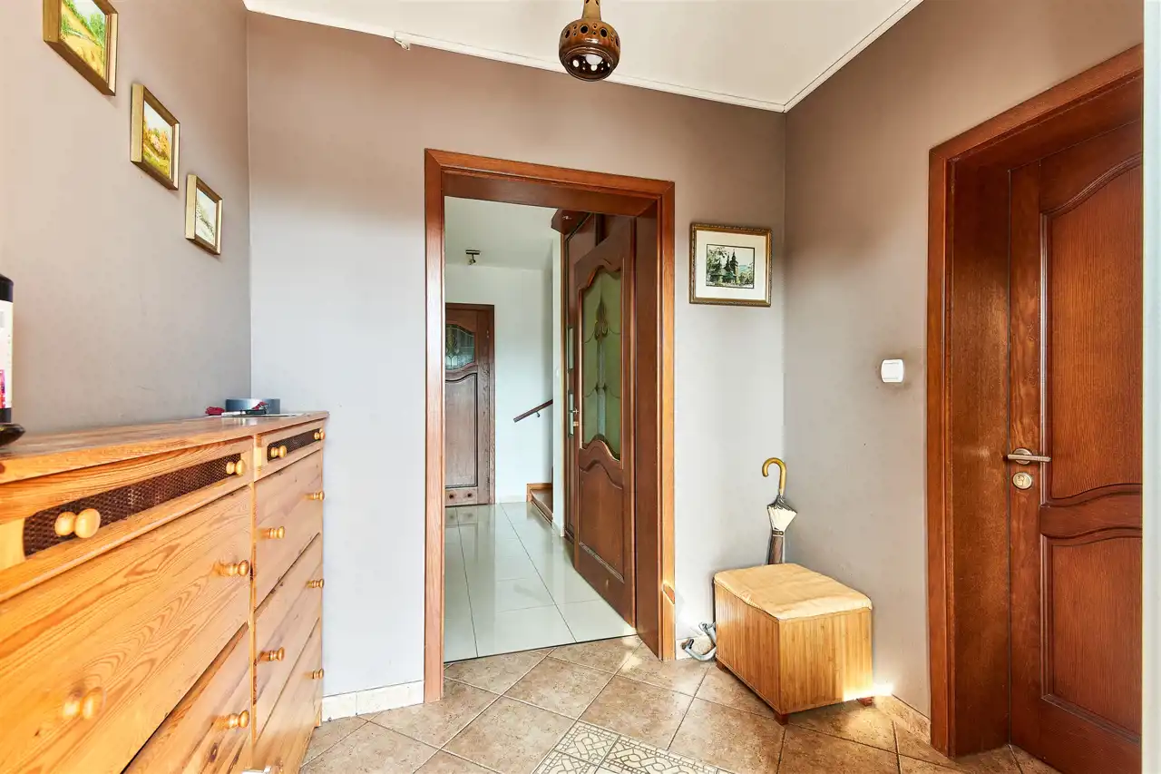 Przed domem znajduje się wybrukowany chodnik oraz podjazd do garażu.