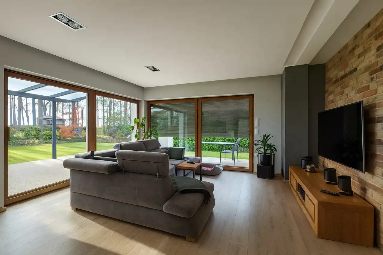 Okna tarasowe rozsuwane — dużo naturalnego światła.