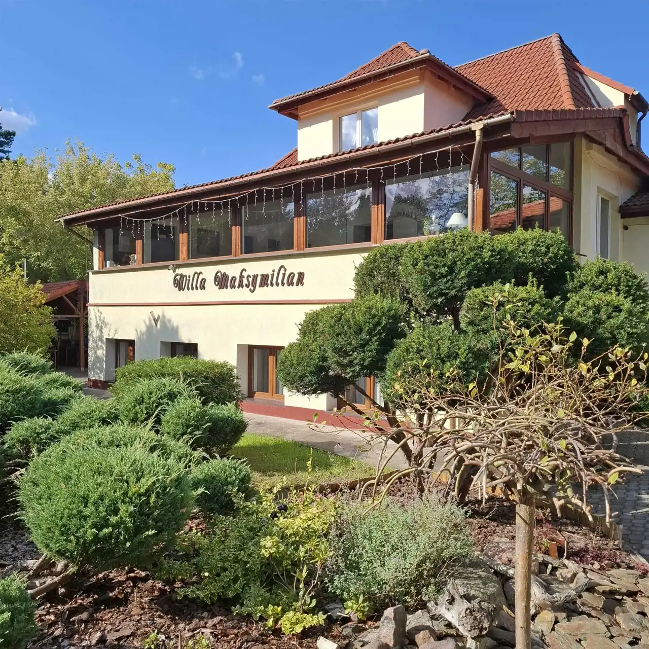 Willa Maksymilian to elegancki budynek o powierzchni 400 m2, usytuowany na zadbanej działce o powierzchni 1314 m2, został zaprojektowany i przebudowany w 2014 roku z myślą o komforcie gości i funkcjonalności.