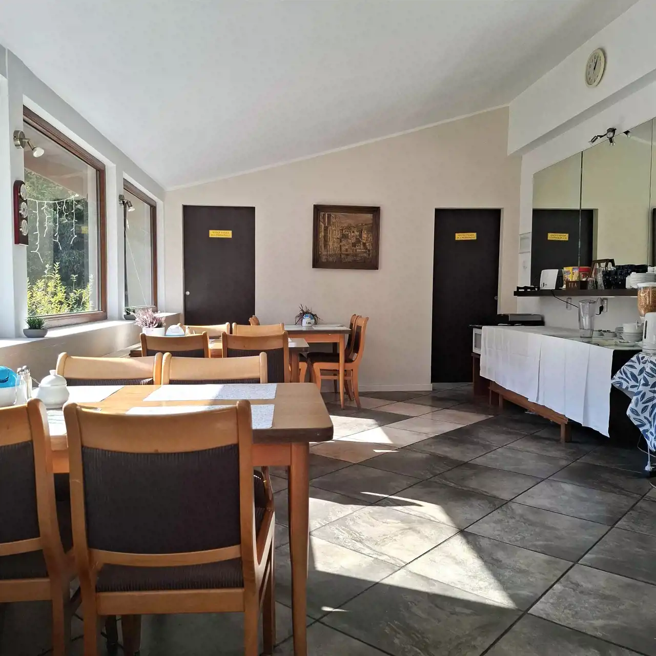 - 10 komfortowych pokoi (jedno, dwu- i trzyosobowych) z łazienkami, urządzonymi w jednakowym stylu