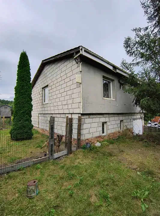 Dom wybudowany w 2008 roku, parterowy z półpiętrem. Dom jest w stanie do remontu, co umożliwia dowolną aranżację przestrzeni. Dom jest częściowo podpiwniczony, z garażem i kotłownią.