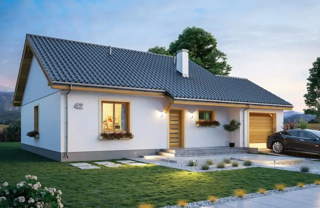 - Rodzaj domu bungalow z poddaszem użytkowym